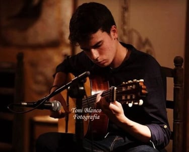 Además, ha demostrado su destreza como guitarrista solista en numerosas ocasiones, cautivando al público con su virtuosismo y su profunda expresividad. También ha tenido el honor de actuar como guitarrista de acompañamiento para el cante y el baile en el Conservatorio Profesional de Danza Kina Jiménez.