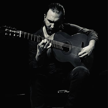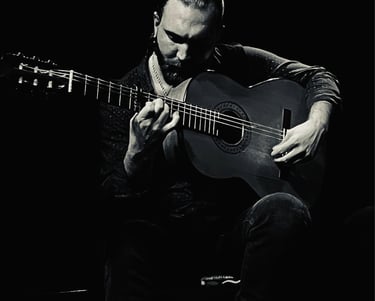 Juan Luis Caro León es un guitarrista flamenco de renombre, cuya maestría en este arte se refleja en una trayectoria laboral impresionante. Con una sólida formación académica, Juan Luis ha obtenido un Grado Superior en Interpretación de Guitarra Flamenca en el prestigioso Conservatorio Superior de Música Rafael Orozco de Córdoba. Además, ha continuado su formación con un Máster en "Investigación y Análisis del Flamenco" en la Universidad Pablo de Olavide en Sevilla, profundizando así su comprensión del género.